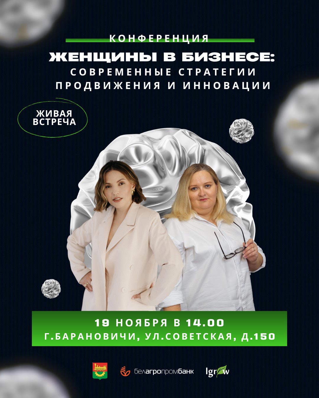 19 ноября 2025 года в 14:00 в Центре притяжения Igrow ОАО «Белагропромбанк» (г. Барановичи, ул. Советская, 150) пройдет конференция в формате диалоговой площадки «Женщины в бизнесе: современные стратегии продвижения и инновации», организованная Брестским областным исполнительным комитетом, Барановичским городским исполнительным комитетом, ОАО «Белагропромбанк» и Барановичским государственным университетом.